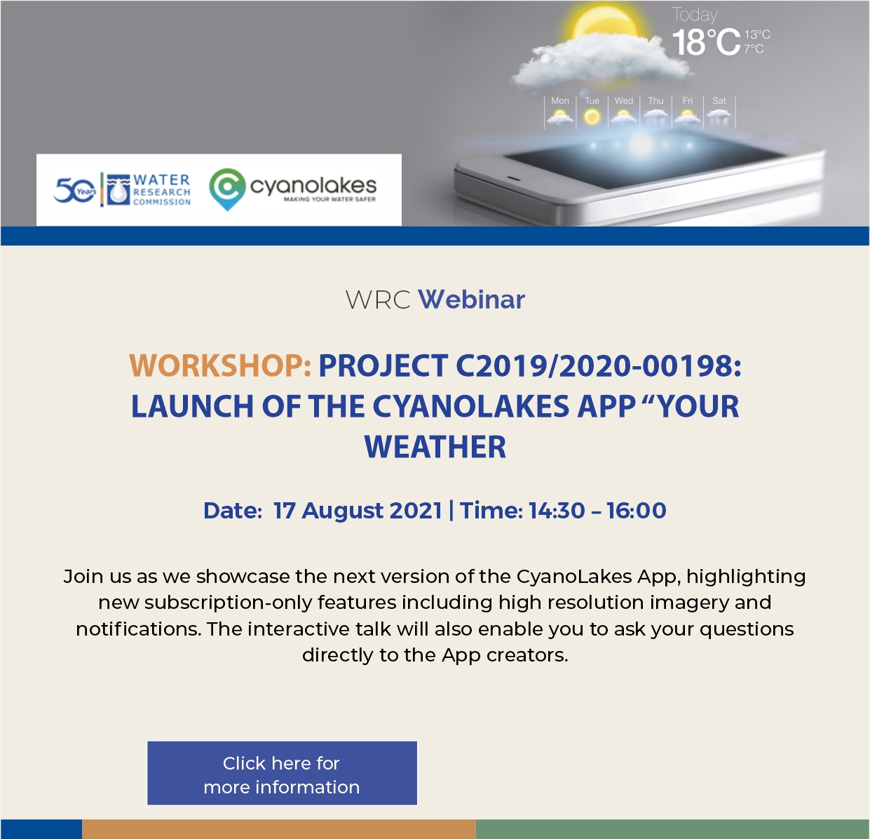 LAUNCH OF THE CYANOLAKES APP “YOUR WEATHER APP FOR LAKES”-invite Download - Stars (0) 64 Downloads Owner: Brian Seabelo Version: 1.0 Last Updated: 22-07-2021 17:44 DescriptionPreview Posted in Uncategorized.